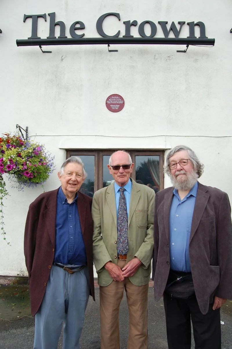 Dr Frank Crompton, Ken Crump and Dr Harcup RIP unveiling a plaque for Powick Hospital on The Crown, Powick