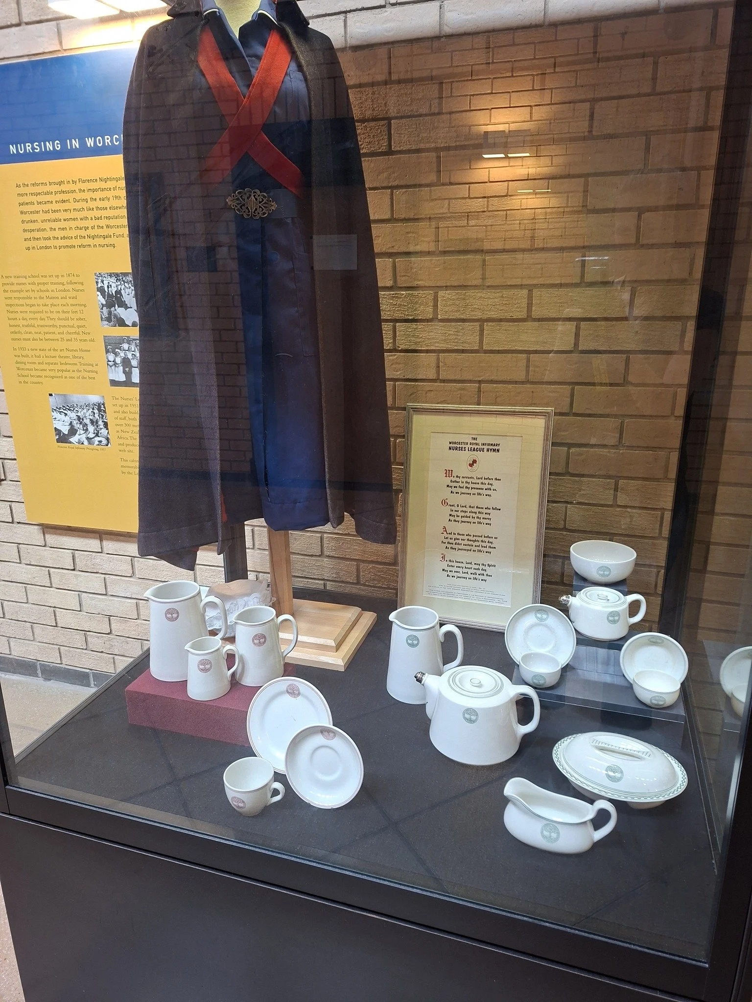 In the Worcester Royal Infirmary Nurses’ League cabinet just outside the museum, there is a small display of crested crockery once used by both nurses and patients at the former Worcester Royal Infirmary from 1948.